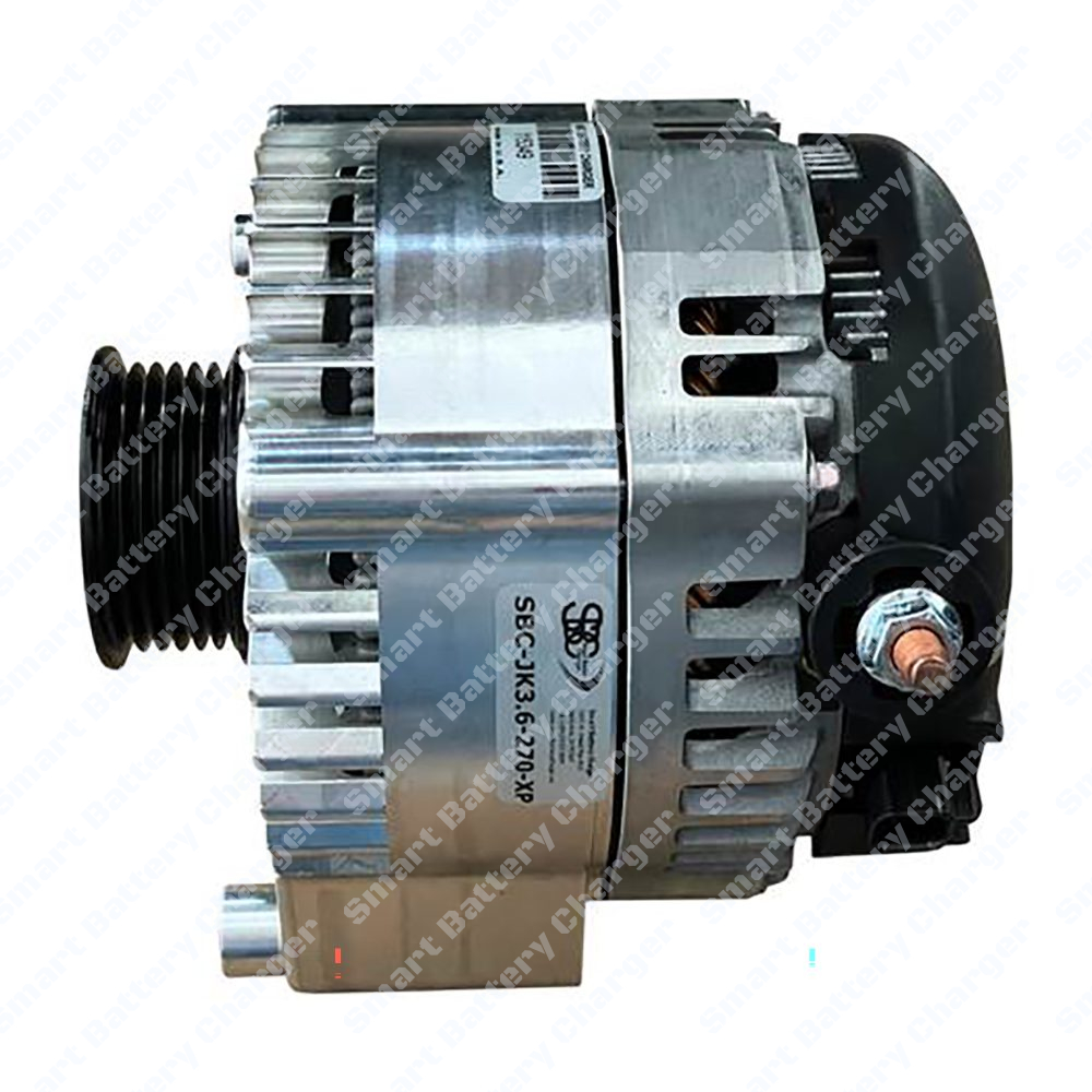 This SBC-JK3.6-270XP alternator generates a maximum of 270 Amps at normal driving speeds and produces 200 Amps at idle. The XP series of SBC alternators are assembled using DENSO components and produce the highest idle output. They feature larger housing while still retaining OEM fitment without any modification required. They run cooler and are virtually indestructible.